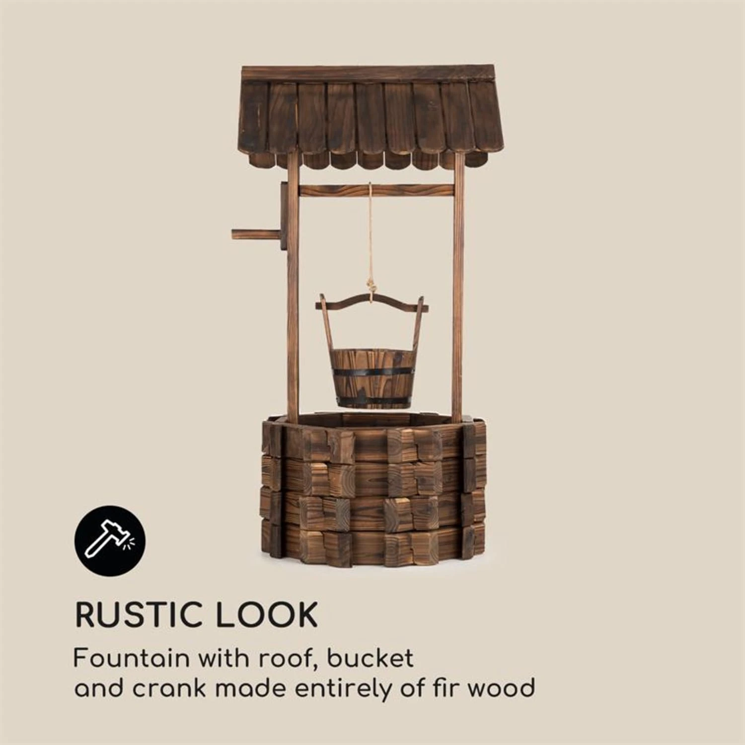 Vollkommen aus Tannenholz gefertigt weckt der 118 cm hohe Brunnen sofort Erinnerungen an vergangene Zeiten und holt rustikale Gemütlichkeit direkt nach Hause. Besonders zauberhaft: Der Eimer auf der drehbaren Welle kann direkt als Halterung für ein Blumenbouquet genutzt werden und stellt so die Verbindung zwischen blühendem Garten und dem Dekorationselement her.