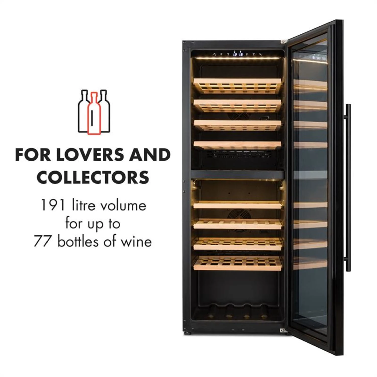 Elegant, hochwertig und wohl temperiert: der Klarstein Barossa 77 Duo Weinkühlschrank fügt sich perfekt in jedes Wohnambiente ein und garantiert perfekt gekühlte Weiß-, Rot- oder Rosé-Weine.