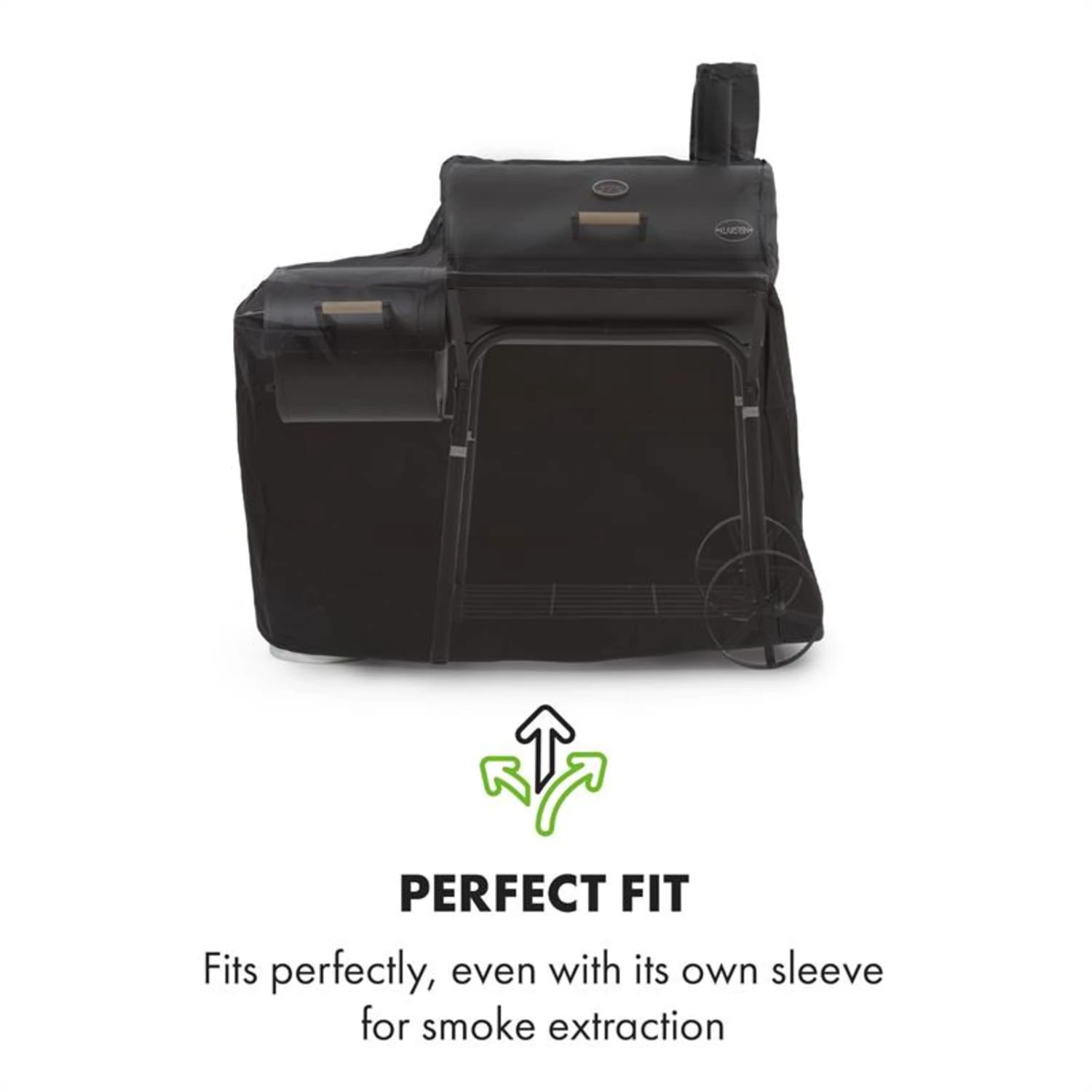 Der Klarstein Beef Brisket Wetterschutz passt perfekt auf den gleichnamigen Grill und hüllt sogar dessen Rauchabzug mit ein! Einfach überziehen und fertig, beschwerliches und zeitraubendes Umräumen und Einlagern entfallen in Zukunft komplett. Die extrem robuste Schutzhülle ist aus extra schwerem Oxford All-Wetter-Tuch gefertigt. Das ist nicht nur wasser- und reißfest, sondern auch ganz einfach abwischbar. So kann der Grill in Zukunft direkt an seinem Einsatzort stehen bleiben, ist vor Wind und Wetter geschützt und mit nur wenigen Handgriffen direkt einsatzbereit.