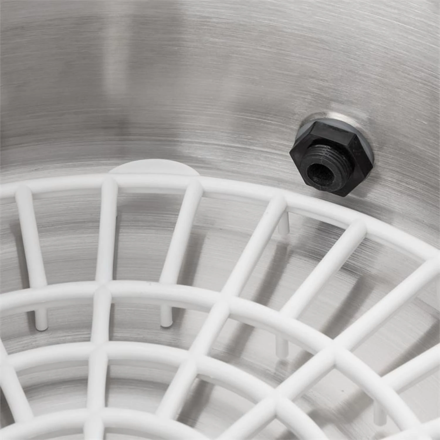 Der Klarstein Biggie Small Einkochvollautomat ist der unkomplizierte Küchenhelfer, mit dem es ganz einfach ist, Lebensmittel natürlich, lecker und gesund zu konservieren. Farb- und Konservierungsstoffe, Zuckerbomben und Lebensmittel fragwürdiger Herkunft gehören in Ihrem Vorratsschrank der Vergangenheit an: Selbstgemacht schmeckt es immer am Besten – egal ob Obst und Gemüse oder Fleisch und Wurstwaren. Im großen Edelstahltopf mit 16 Liter Fassungsvermögen finden bis zu 7 Ein-Liter-Einweckgläser auf einmal Platz. Völlig unkompliziert werden über zwei Drehschalter Temperatur und Einkochzeit gewählt, danach arbeitet der 2000 W starke Vollautomat ganz allein und schaltet sich nach Ablauf des Timers selbstständig aus. Ein praktischer Zapfhahn kann zum Ablassen des Wassers oder zum Zapfen von heißem Glühwein, Tee oder Saft genutzt werden.