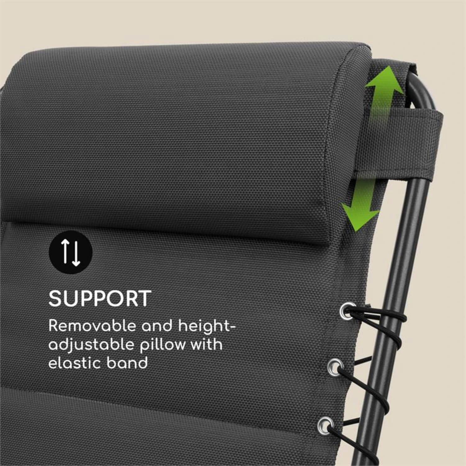 Bei der Verarbeitung hat Blumfeldt nicht nur auf hohe Qualität, sondern auch auf besonderen Komfort geachtet: Das PureRelaxation System besticht deshalb mit einem ergonomischen Design und einer 4 cm hohen Polsterung. Der Rahmen besteht aus robusten Stahlrohren, die der Liege jederzeit einen stabilen Stand verleihen. Ein abnehmbares und höhenverstellbares Kopfkissen mit Elastikband gewährleistet außerdem eine äußerst bequeme Nutzung. Zusätzlich zu ihrem eleganten und edlen Erscheinungsbild sorgt die Sonnenliege mit einer verstellbaren Rückenlehne immer für die richtige Lage und den bequemen Sitz. Zusammengeklappt nimmt die California Dreaming Sonnenliege von Blumfeldt wenig Platz ein und ist mit wenigen Handgriffen aufgestellt. Durch ihr wasserabweisendes und atmungsaktives Material kann sie Wind und Wetter trotzen und ist somit ideal für den Außenbereich geeignet.