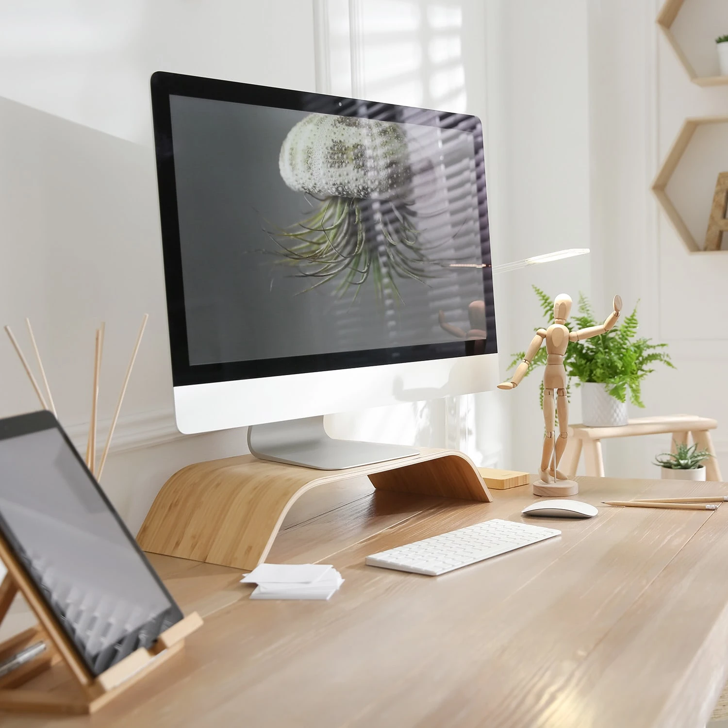 Ein echtes Schmuckstück auf jedem Schreibtisch: die formschöne Design-Monitorerhöhung vom Bambuswald.