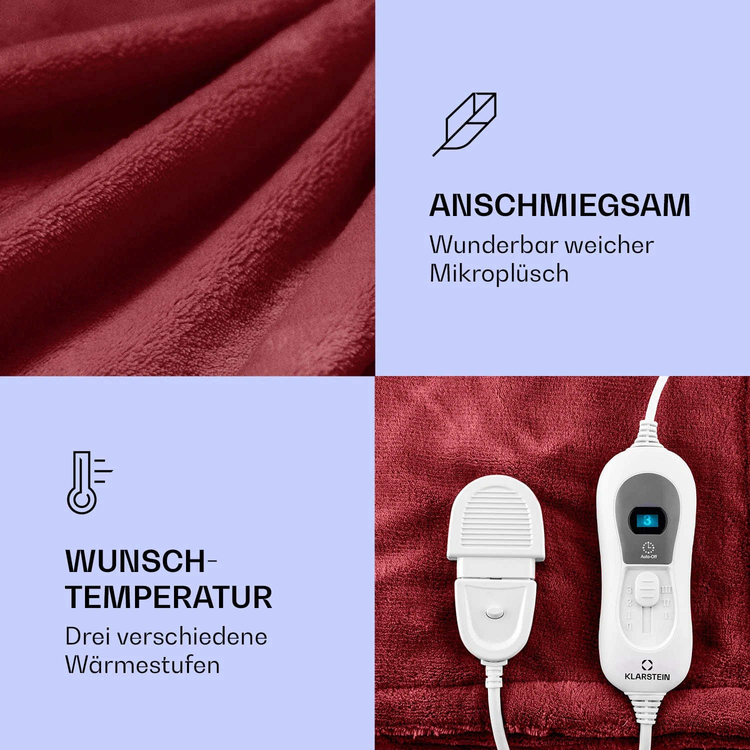 - Temperatur: 3 Leistungsstufen
