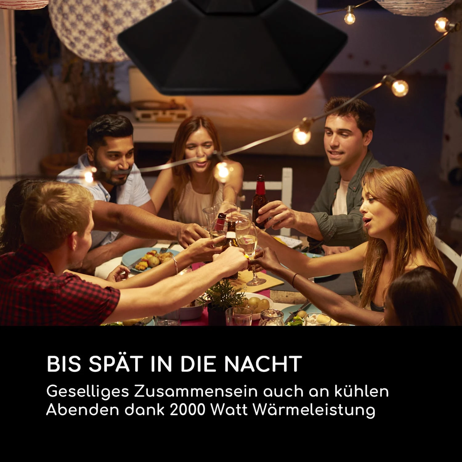 Feiern bis spät in die Nacht, die Zeit mit Freunden genießen oder einen romantischen Abend bei Wein und Kerzenschein auf der Terrasse verbringen: Die blumfeldt Heat Hexa Elektroheizung sorgt immer für die gewünschte Wärme.
