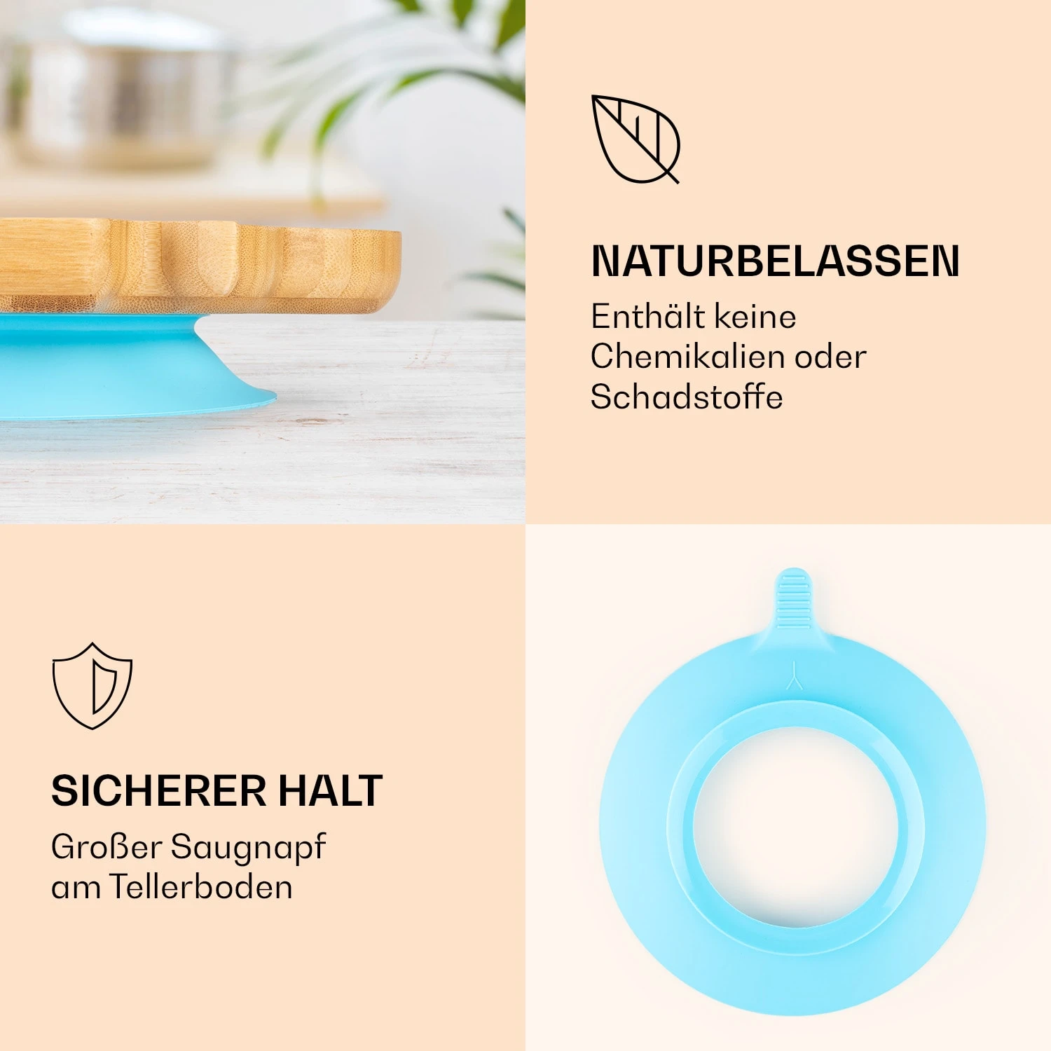 Kindergeschirr Bambusteller & Löffel 250 Ml Inkl. Saugnapf 18 X 18 Cm