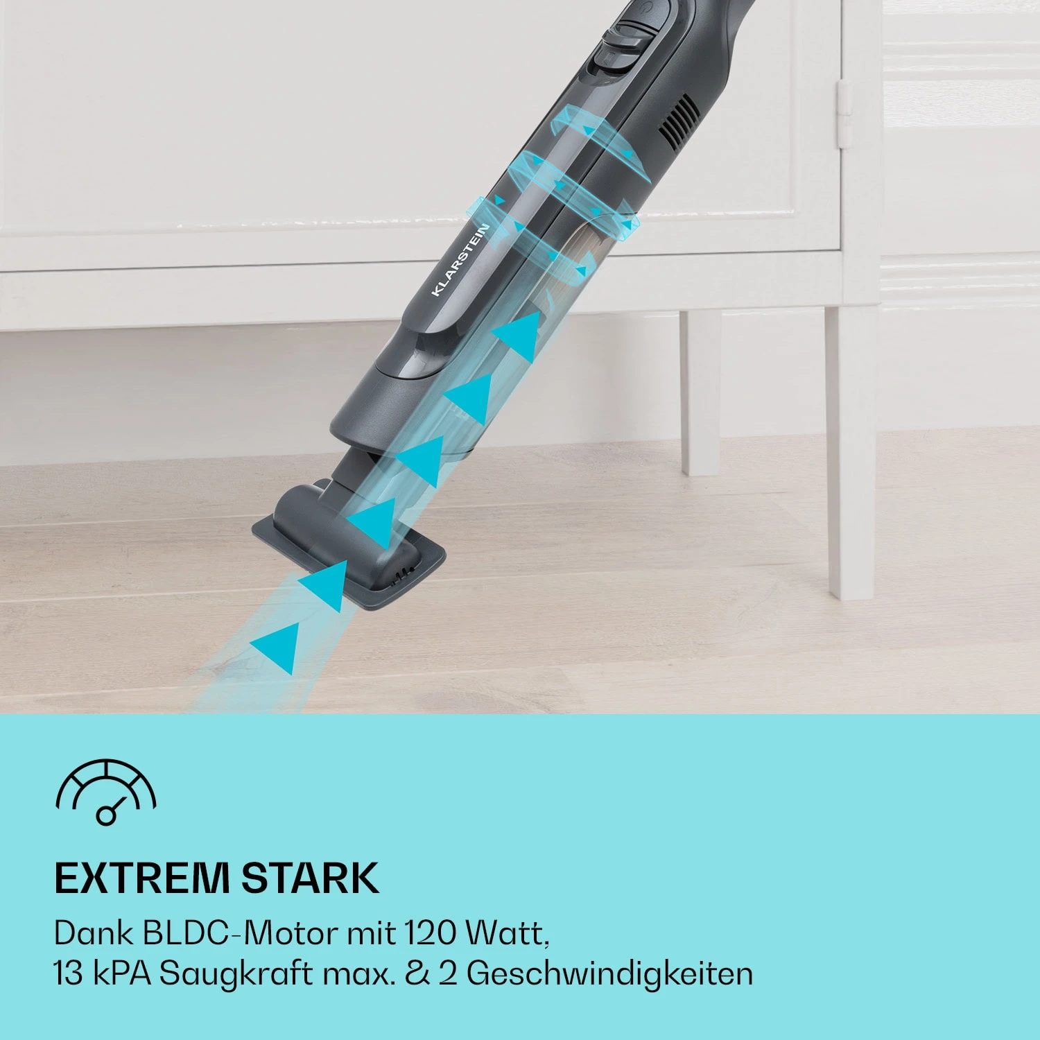 Kompakt, beutellos und kraftvoll: Der Klarstein LARMA Akku-Handstaubsauger macht mit Staub, Haaren und Schmutz kurzen Prozess. Seine handliche Größe ist perfekt zum Reinigung von Sofas, Polstern und Autos geeignet. Dabei befördert der starke Motor des LARMA bis zu 32 Minuten lang unaufhörlich Haare, Krümel und Fusseln in den mit einem EPA E10-Filter bestückten Staubbehälter. Die 2-in-1 Fugendüse mit Möbelbürste sowie eine Polsterdüse kommen an unzugängliche Stellen während die USB-C-Ladestation ein besonders bequemes Ladeerlebnis ermöglicht.