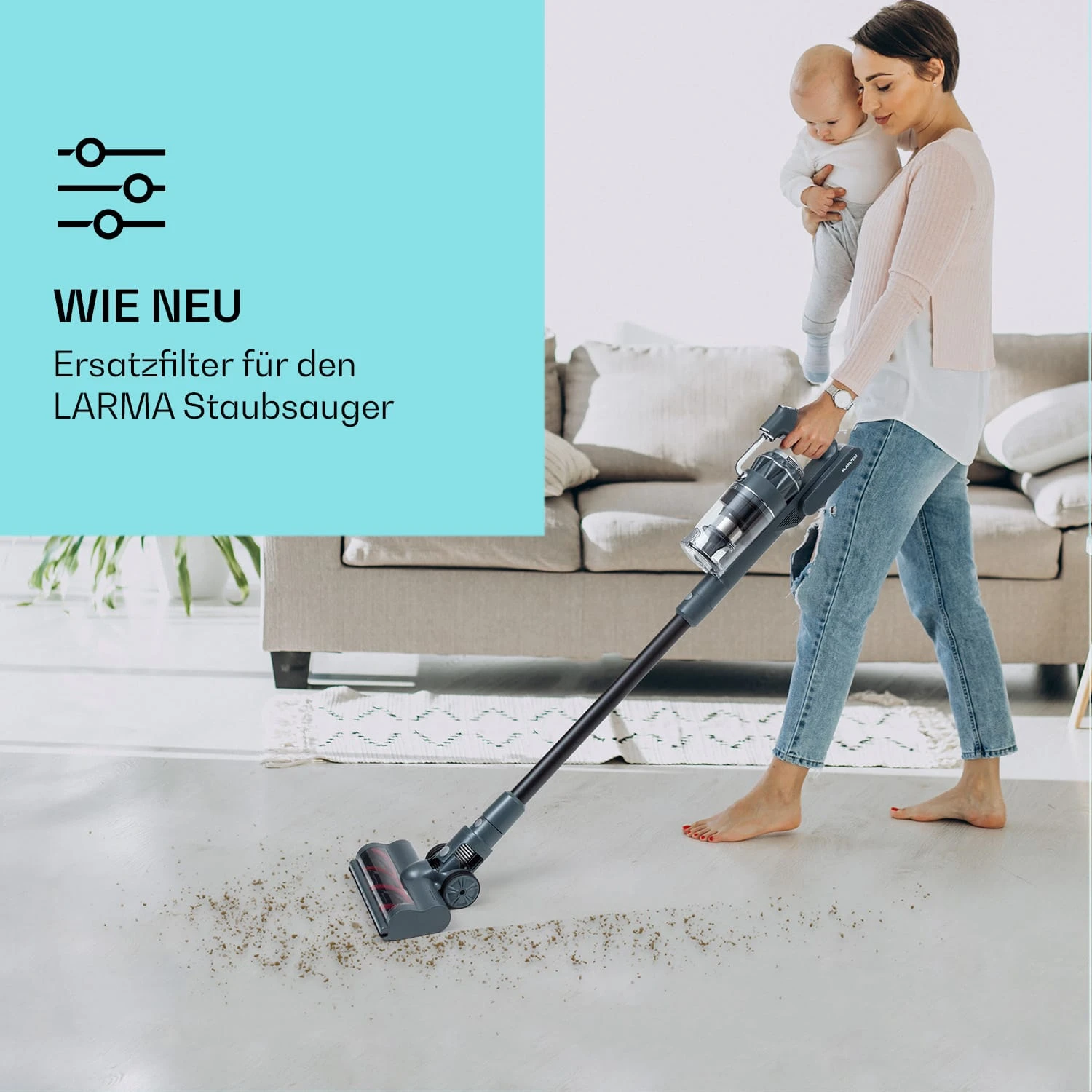 Der EPA E12-Ersatzfilter ersetzt verschlissene und verstopfe Filter im Klarstein LARMA Staubsauger. Mit einer 99,5-prozentigen Filtereffizienz befreit er dich zuverlässig von Feinstäuben, Pollen, Milbeneiern und -ausscheidungen. Damit ist er besonders gut für Allergiker geeignet. Um die Reinigungsleistung deines Staubsaugers langfristig zu erhalten, solltest du den Filter regelmäßig waschen und wechseln.