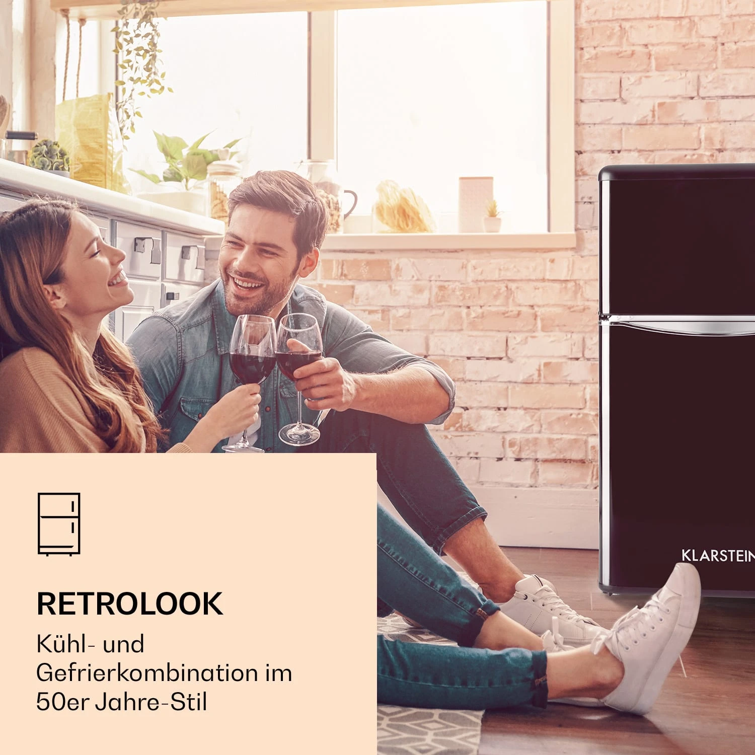Flashback in der Küche! Mit der Klarstein Monroe Kühl- und Gefrierkombination kehrt das Flair der 50er Jahre zurück, um ganz lässig deine Kühlware frisch zu halten. Mit 61 Litern Stauraum, zwei Glasablagen und zwei Türfächern im Kühl- und 24 Litern Volumen im Gefrierteil steht genügend Platz für Lebensmittel bereit. Via 5-stufigem Drehregler lässt sich eine Temperatur zwischen 0 und 10 °C einstellen. Natürlich verfügt der Monroe über eine Innenbeleuchtung und höhenverstellbare Füße.