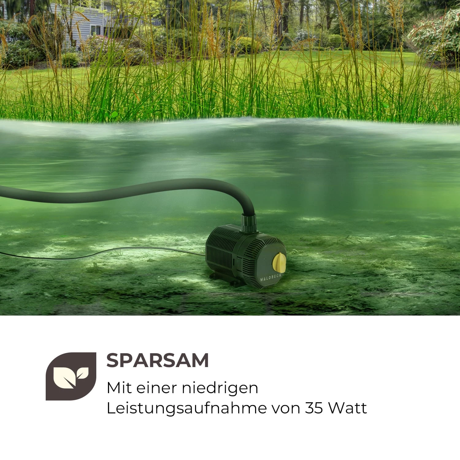 Die Waldbeck Nemesis T35 Teichpumpe ist ein dank ihrer starken Leistung, ihrer kompakten Größe und der flexiblen Nutzung ein starker Wasserförderer mit vielen Einsatzgebieten.