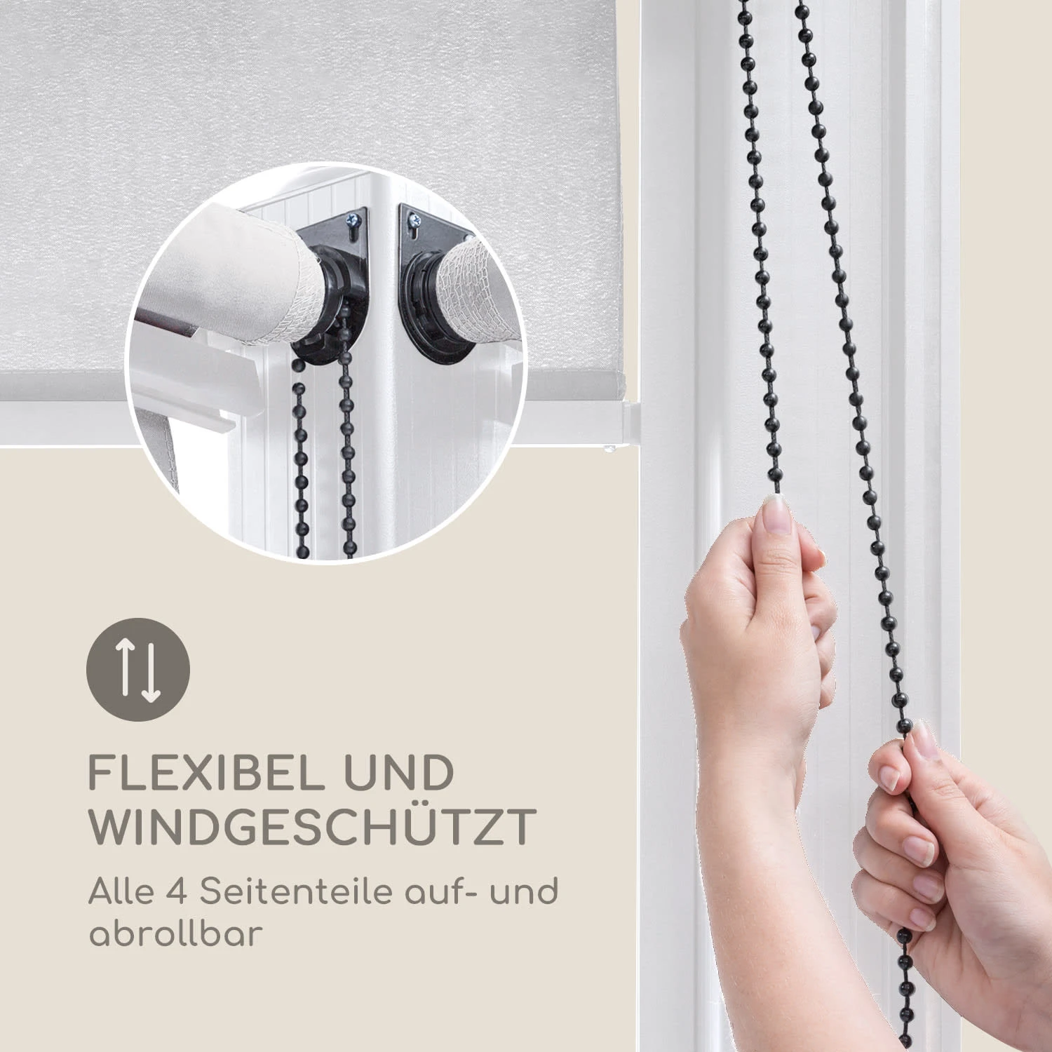 Mit dem stufenlos raffbaren Stoffdach aus 180 g/m² Polyester erhältst du die volle Kontrolle über Schatten und Sonne. Der Seilzug lässt das Sonnendach des Pavillons in seinen Führungsschienen geschmeidig vor- und zurückgleiten, die wasserabweisende Beschichtung schützt vor Schimmel und kurzen Regenschauern. Durch die flexibel auf- und abrollbaren Seitenteile aus 160 g/m² Polyester-Stoff bleibst du die ganze Zeit windgeschützt.