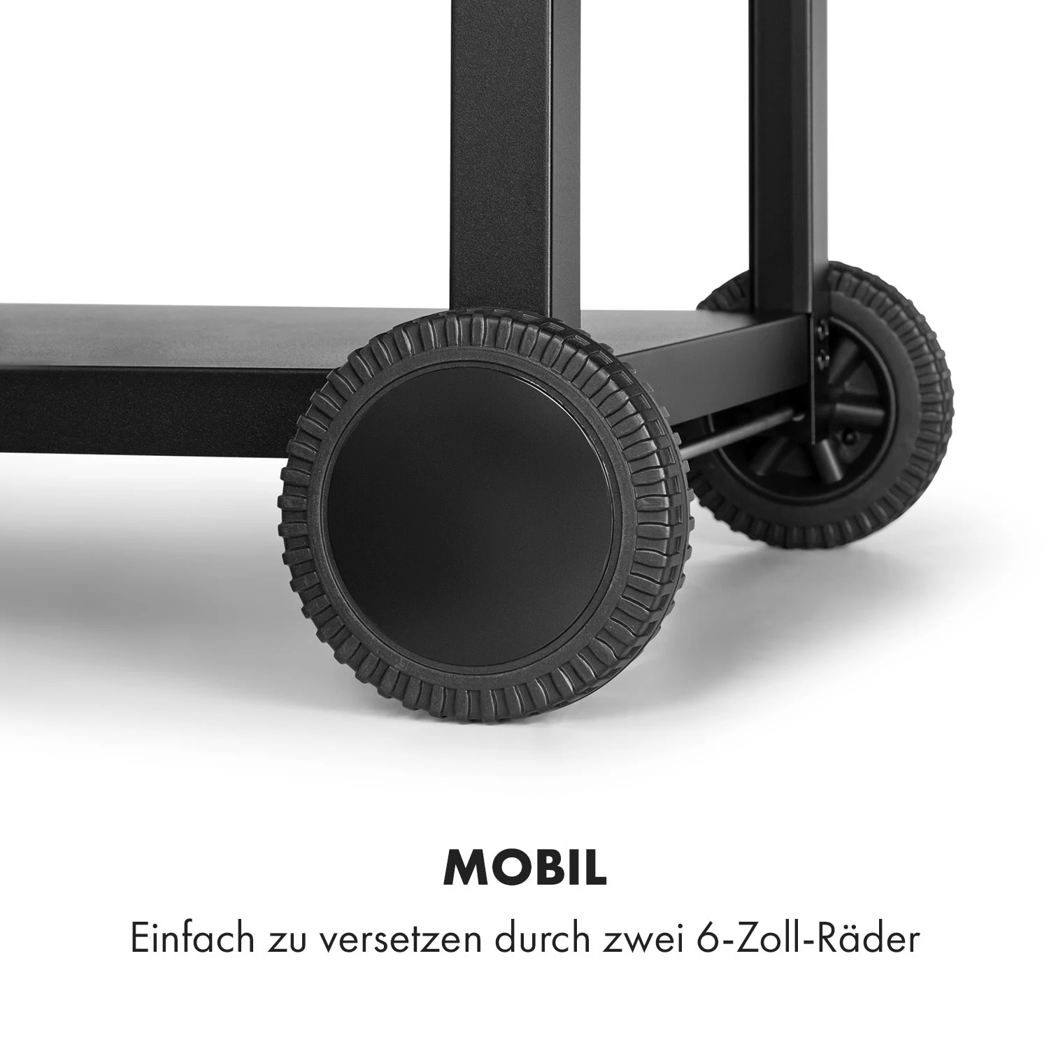 Leckere Pizza auf dem Stein gebacken oder knuspriges Grillbrot, mit dem Klarstein Pizzaiolo Pro Grillofen gelingen italienische Spezialitäten genauso wie rustikale Broterlebnisse sowie vegetarische und fleischliche Grillspezialitäten. Der praktische Gasgrill backt oder grillt die Gaumenfreuden entweder auf dem 38 x 36 cm großen Schamotte-Stein oder direkt auf dem 2-teiligen, 46 x 42 cm Edelstahl-Rost. Das Anfachen der Flamme funktioniert ganz einfach über eine elektrische Piezo-Zündung, somit muss kein zusätzliches Feuer genutzt werden. Für die einfache Überwachung der richtigen Gar-Temperatur sorgt das integrierte Thermometer. Am Drehknopf kann die Flammenleistung ganz einfach reguliert werden. Der Seitentisch bietet mit seiner 30 x 48 cm großen Abstellfläche ausreichend Platz für Gewürze, Öle oder Getränke. Durch das doppelwandige Stahlblech ist der Grill nicht nur äußerst robust, sondern speichert auch langfristig die Wärme und erzielt so noch bessere Grillergebnisse. Natürlich wird auch das Handling groß geschrieben: Der Klarstein Pizzaiolo Pro Gasgrill ist dank seiner 2 Räder leicht zu versetzen. Eine herausnehmbare Fettauffangschale erleichtert die Reinigung nach dem Grill- und Backgelage.