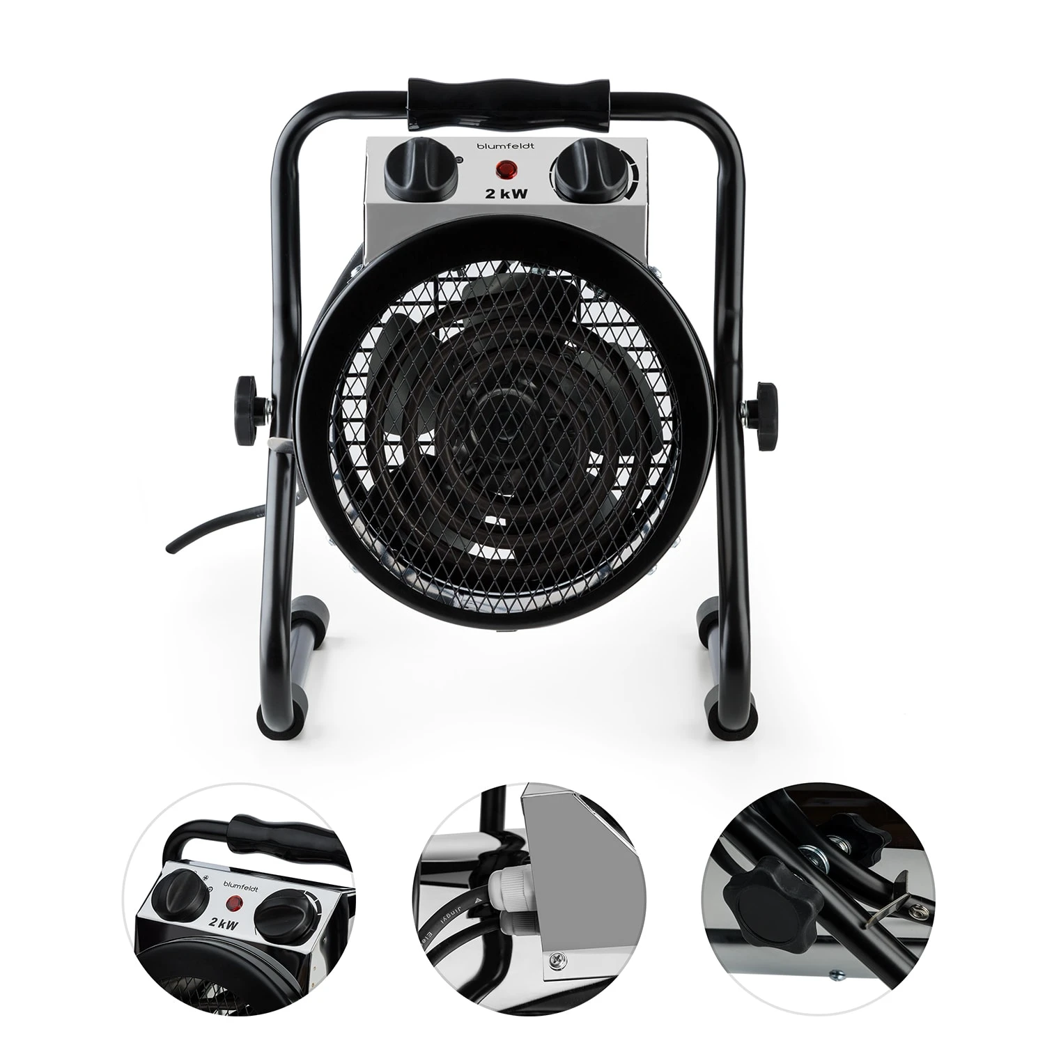 - Heizleistung stufenlos regelbar: 0 – 2000 Watt