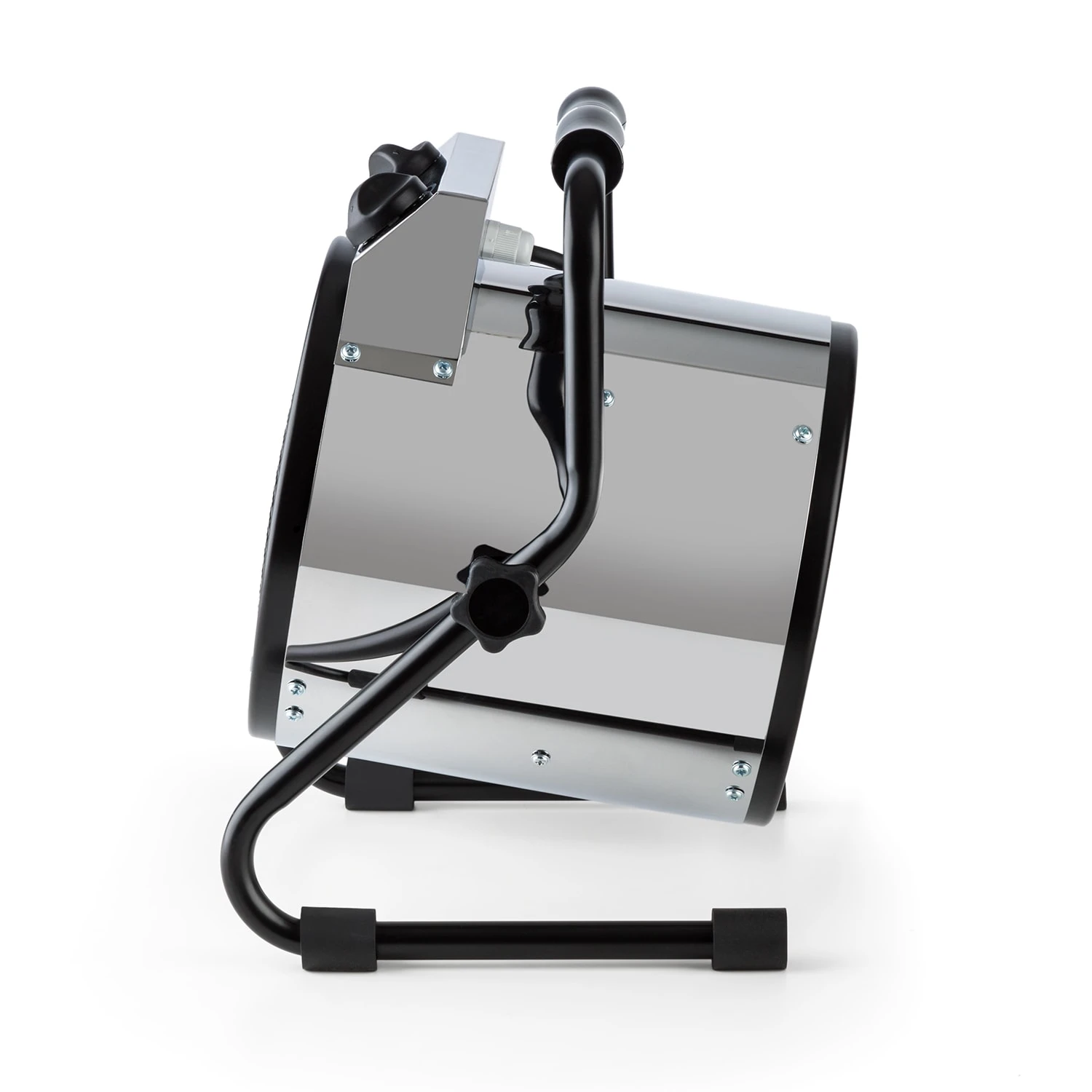 Die robuste Gewächshausheizung aus rostfreiem Stahl ist nach IPX4 spritzwassergeschützt und kann demnach gefahrlos beim Gießen benetzt werden. Dank der geringen Stellmaße, dem stabilen Standfuß und dem praktischen Tragegriff lässt sich die Gebläseheizung überall optimal ausrichten.