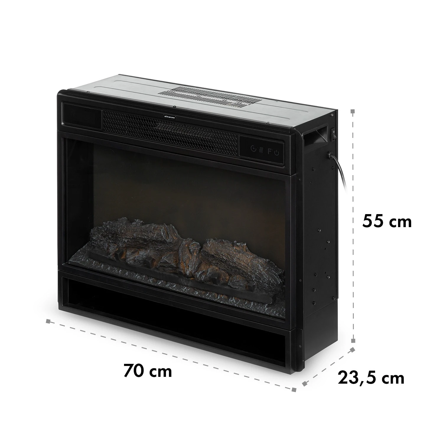 Behagliche Stunden am modernen Kamin verbringen: Der Klarstein Vulsini Elektro-Kamin zaubert realistisch illuminiert ein Flammenspiel ganz ohne Rauch und Ruß. Wundervoll fügt er sich in Nischen ein, du kannst ihn perfekt in Trockenbauwände einbauen oder in einem Kamingehäuse präsentieren. Dort züngeln die LED-Flammen täuschend echt wie am prasselnden Kaminfeuer. Die zuschaltbare Heizfunktion sorgt dabei für kuschelige Wärme zwischen 17 und 27 °C im Raum. Die Helligkeit der Flammenillusion und der animierten glühenden Holzscheite kannst du aus 4 Stufen wählen – alles geht bequem per Fernbedienung und du kannst eine automatische Funktion per Timer vorprogrammieren. Optisch ist der Kamin ein wahrer Hingucker mit modernem Gesicht – unterstreiche diese Erscheinung indem du das untere Fach mit Holzscheiten drapierst.